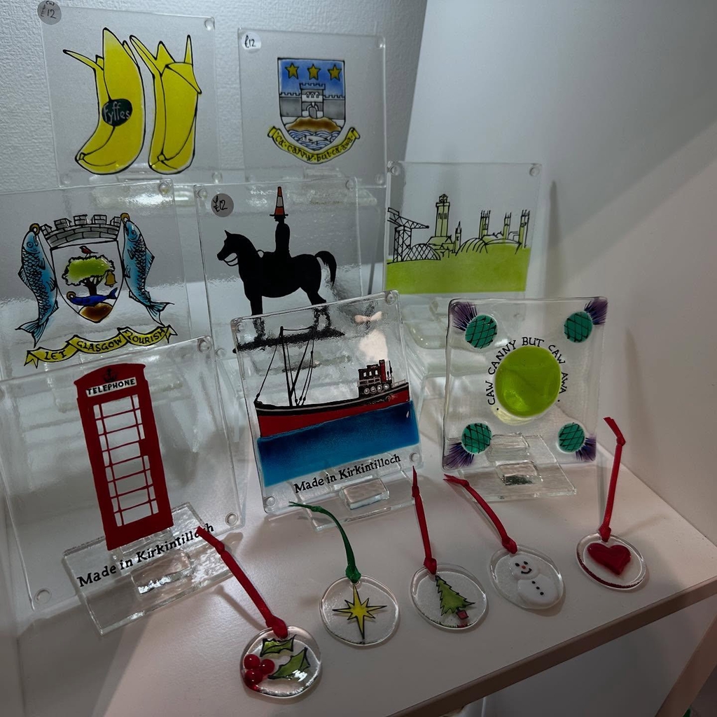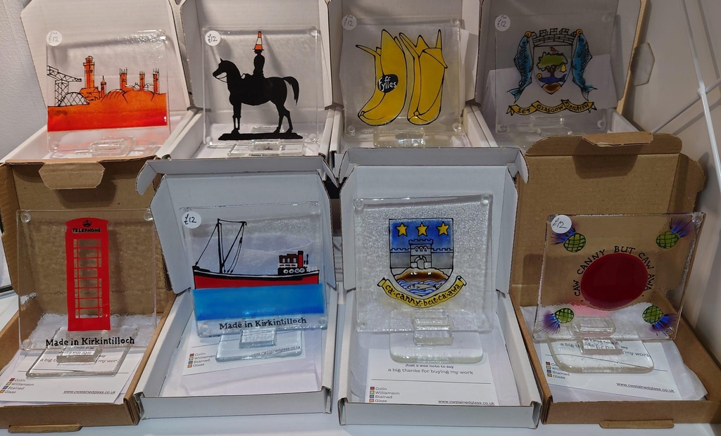 I live in Kirky where I design and create stained glass panels, ranging from small decorative pieces to large window and door panels. My most popular items include fused glass telephone boxes and hand-painted scenes of Kirky landmarks. I craft all my glasswork in my workshop at the bottom of my garden, ensuring each piece is uniquely handmade.