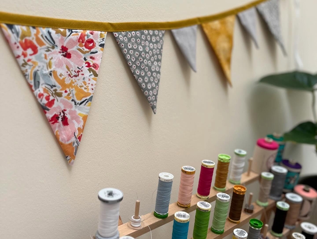 My name is Lorna, and I live in Bishopbriggs with my daughter, Emily. My sewing journey began with my mum, Betty, who worked as a dressmaker in the 1940s and 50s before becoming a stay at home mum. I have fond memories of sewing on mum’s treadle Singer and a 1970s Jones machine that came in a teal floral carry case. Mum always made most of my clothes, something I did not fully appreciate as a teenager, and sewed all of our wedding dresses.